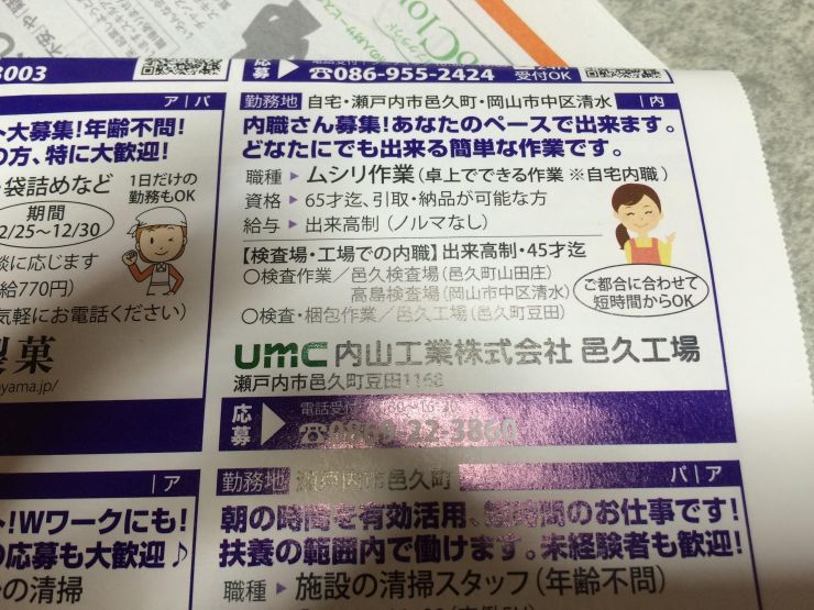 ユーザから投稿してもらった備前市の内職チラシ情報を公開しています。