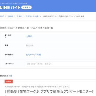 何より手軽に仕事探しをしたいという方はLINEバイトがおすすめです。LINEのアプリをすでに使っている方はその他のタブからすぐに仕事探しが出来ますよ。大東市で検索すると買い物モニターとアンケートモニターの募集が見つかります。希望の条件のお仕事が自動的にLINEに送られて来たり、採用担当者とやり取りが出来たりとLINEの機能を生かしたサービスが充実しています。使い慣れたもので仕事探しが出来るとスイスイと検索ができますね。