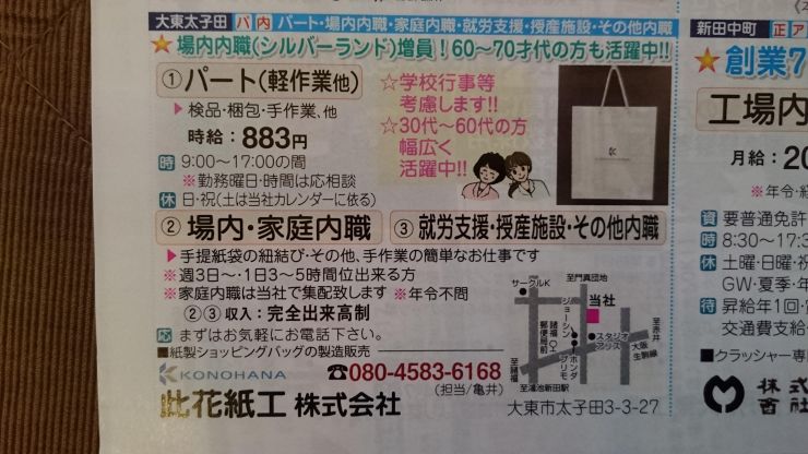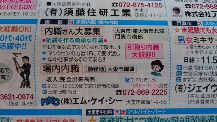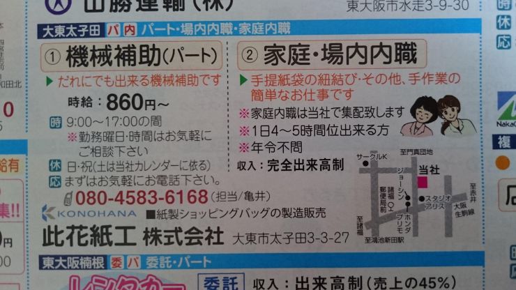 大東市の内職チラシ