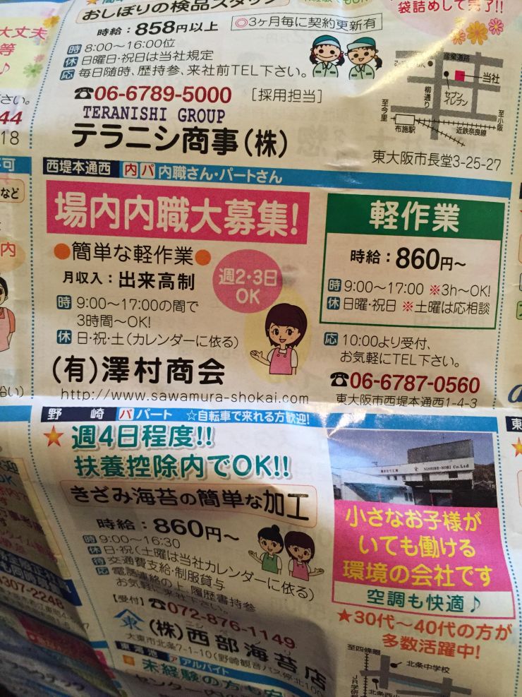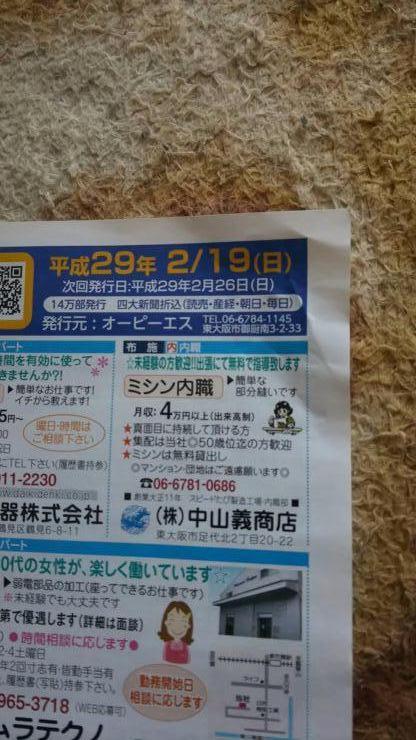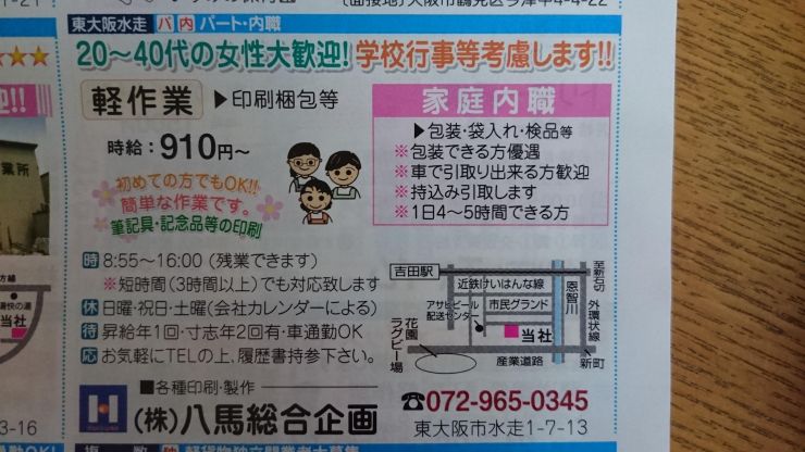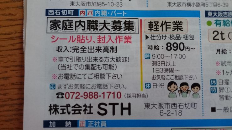 東大阪市の内職チラシ