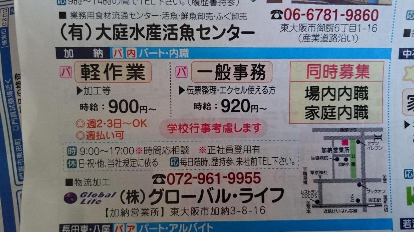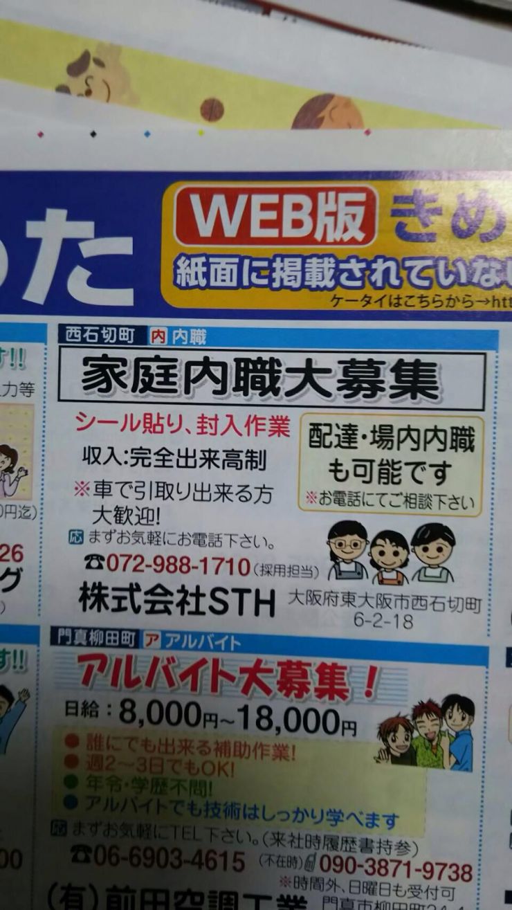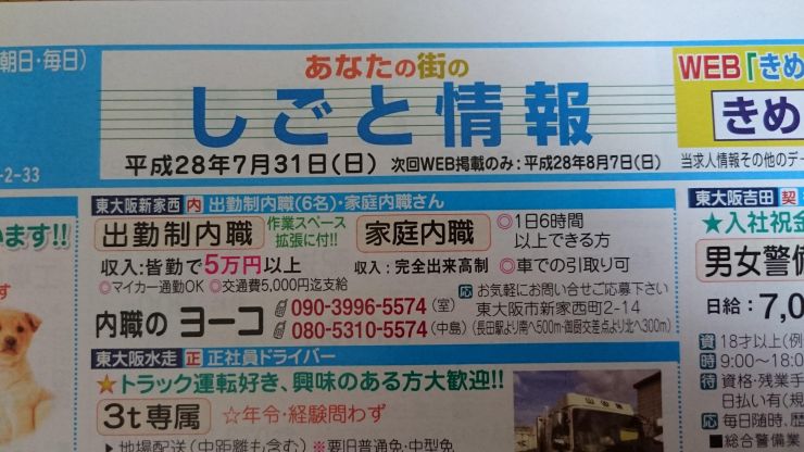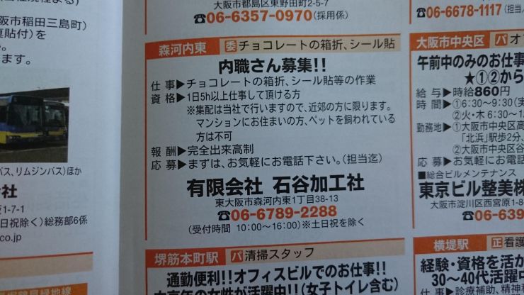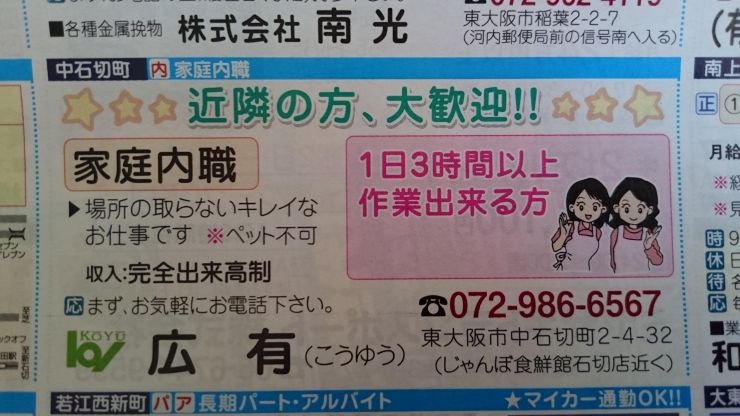 ユーザから投稿してもらった東大阪市の内職チラシ情報を公開しています。