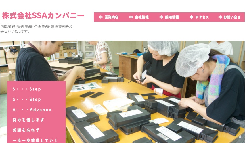公式サイトへ「株式会社 SSAカンパニー」の内職について、ホームページの記載内容から、オススメできそうか(安心できそうか)を在宅ワークガイド・スタッフが独自にチェックしました。(2015年12月12日チェック)