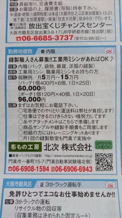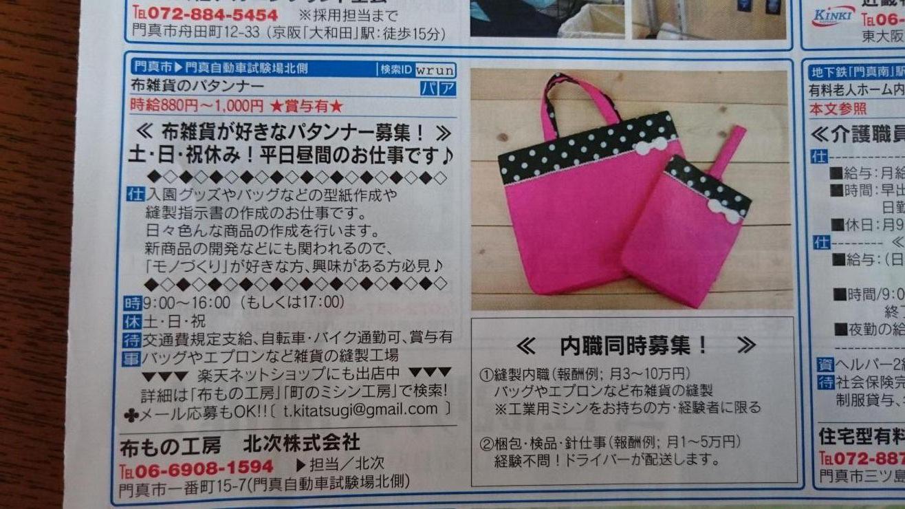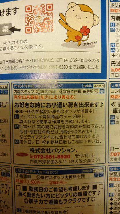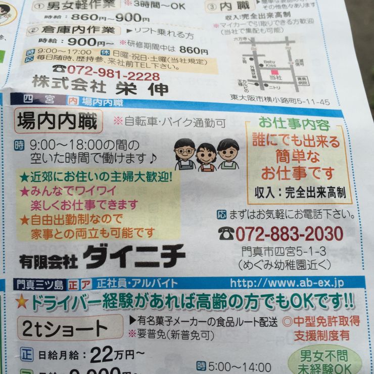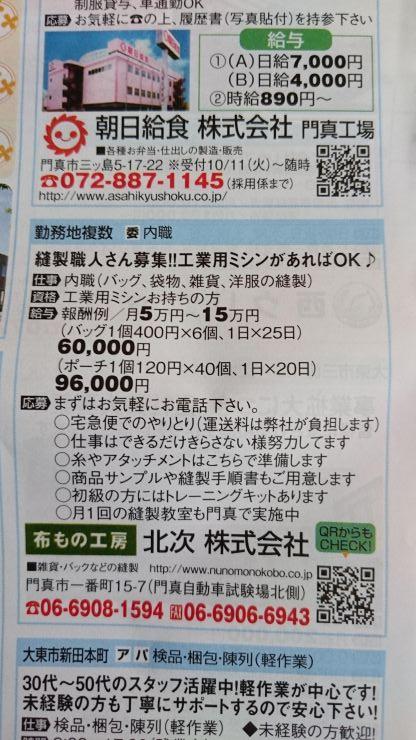 ユーザから投稿してもらった門真市の内職チラシ情報を公開しています。