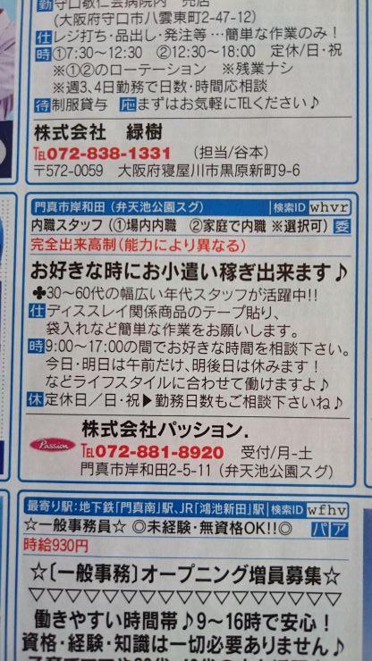 門真市の内職チラシ
