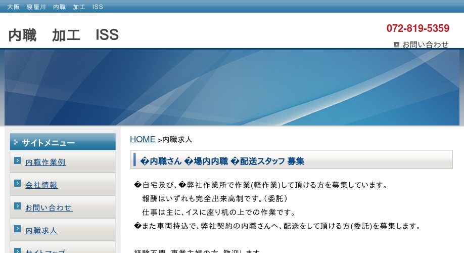 公式サイトへ「ISS」の内職について、ホームページの記載内容から、オススメできそうか(安心できそうか)を在宅ワークガイド・スタッフが独自にチェックしました。(2015年12月13日チェック)