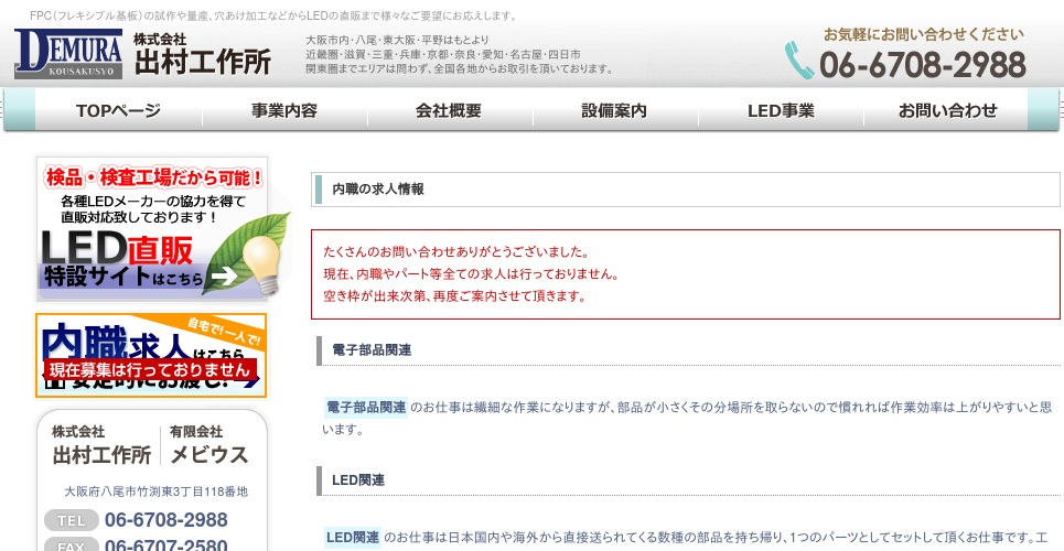 公式サイトへ「株式会社出村工作所」の内職について、ホームページの記載内容から、オススメできそうか(安心できそうか)を在宅ワークガイド・スタッフが独自にチェックしました。(2016年1月17日チェック)