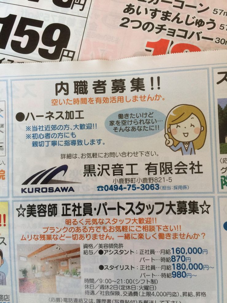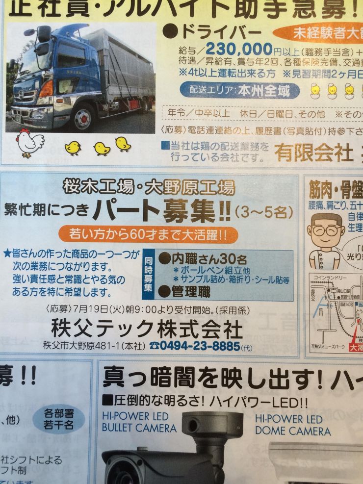 ユーザから投稿してもらった秩父市の内職チラシ情報を公開しています。
