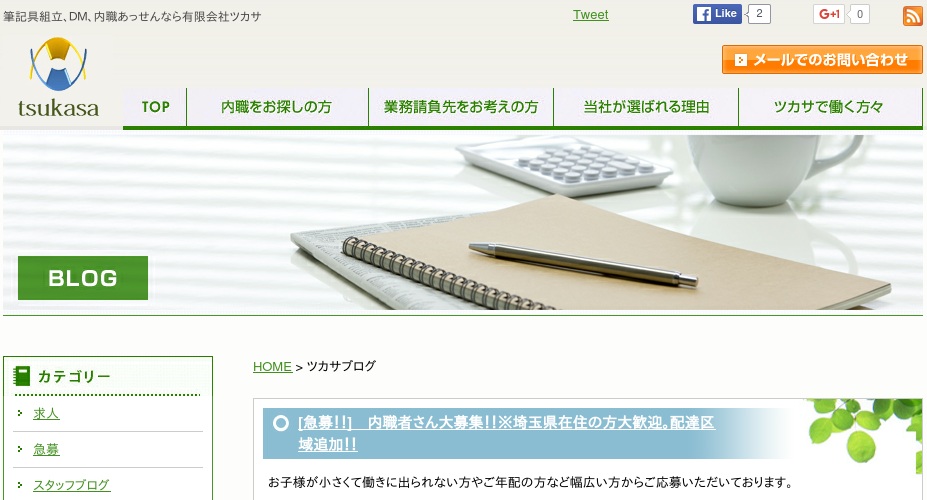 シャープペンシルやボールペンの組み立てや検査、梱包の仕事になります。会社での集配も行っていますが、大宮工場まで自家用車で引き取り・納品が可能な方を優先して募集しているようです。1日の作業時間は4?5時間くらいとなっており、小さい部品を取り扱うこともあるのでコツコツと作業するのが得意な方に向いていると思います。