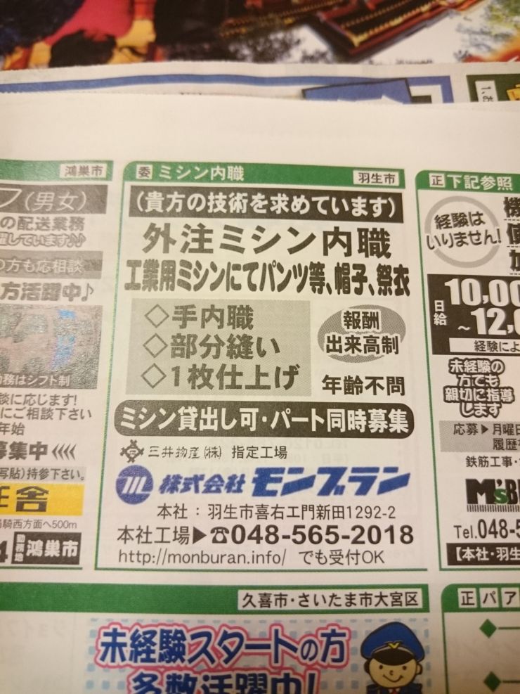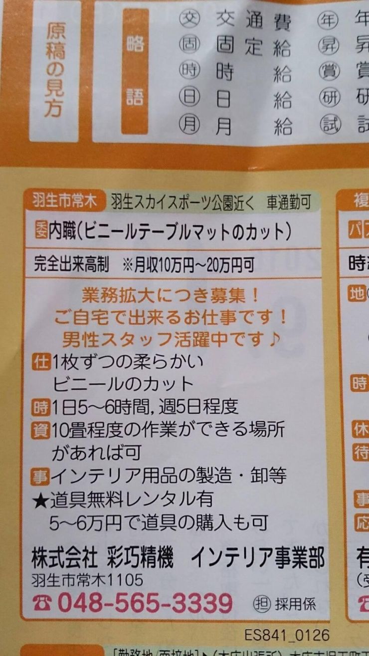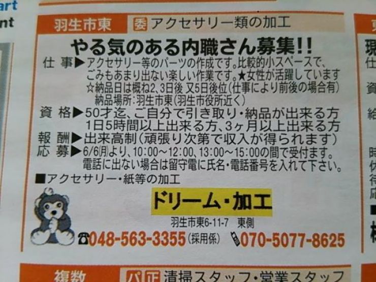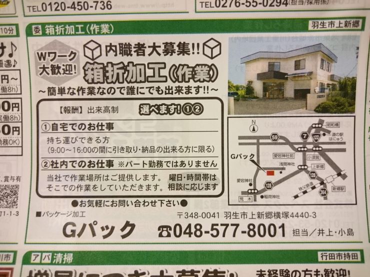 ユーザから投稿してもらった羽生市の内職チラシ情報を公開しています。