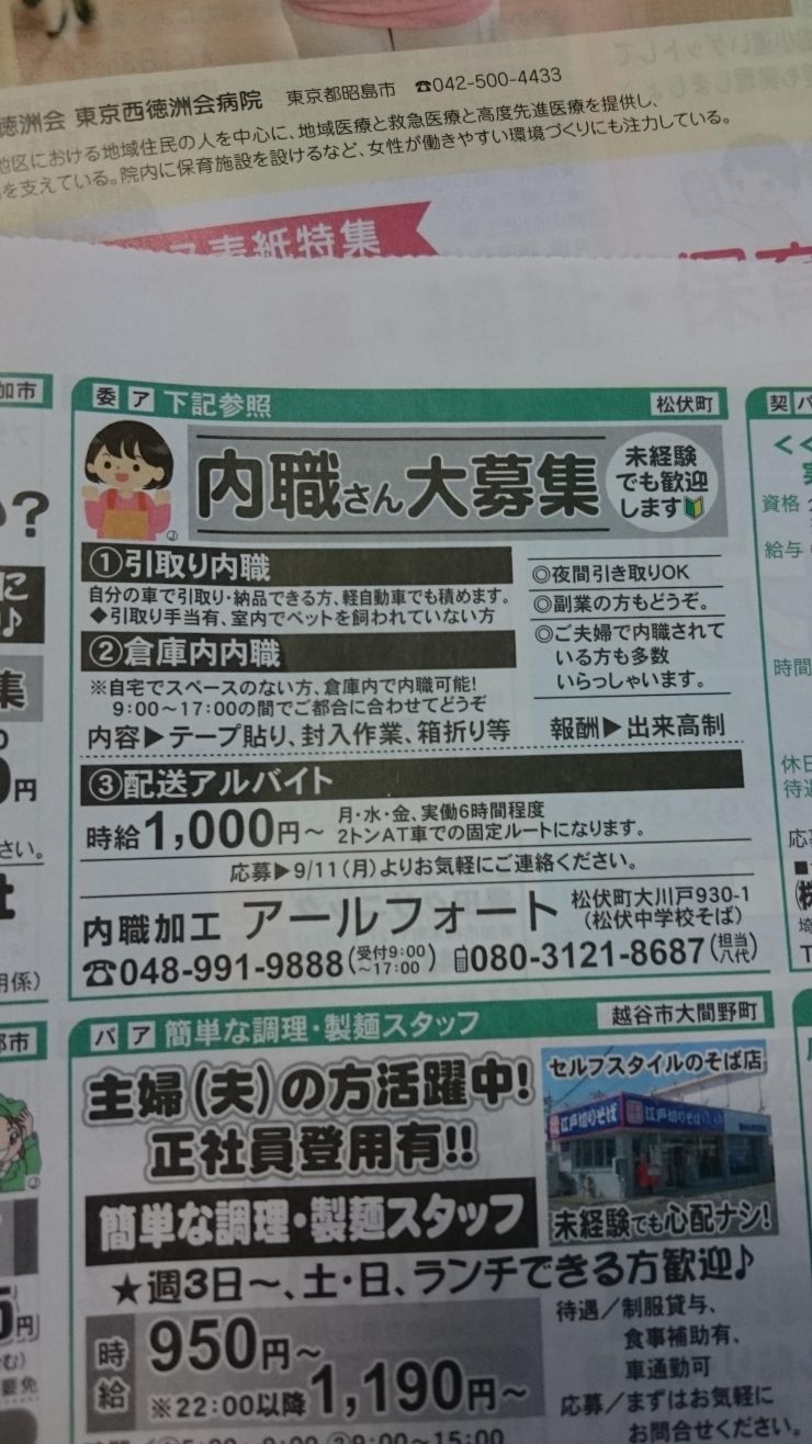 春日部市の内職チラシ