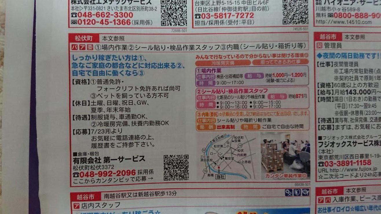 ユーザから投稿してもらった春日部市の内職チラシ情報を公開しています。