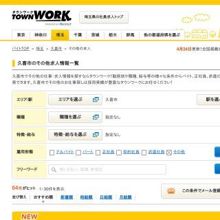 似ている条件のお仕事も紹介してくれる「タウンワーク」