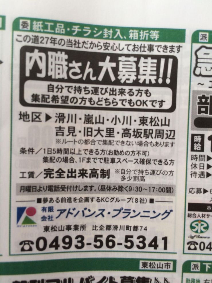 ユーザから投稿してもらった坂戸市の内職チラシ情報を公開しています。