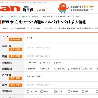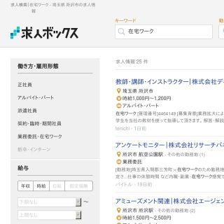 こちらもネット上の求人情報をまとめて検索できるサイトです。5万8000以上という莫大な数のサイトから毎日情報を収集しています。所沢市では「アンケートモニター」、「Webモニター」の在宅ワークがあります。キーワードと勤務地を入力するだけで求人情報が出てくるので手軽に検索できます。勤務地と業種からも検索することができます。関連、日付、給与順に並び替えが可能なので、自分が見やすい順に並び替えるといいでしょう。