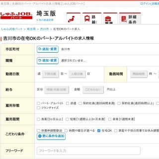 勤務地とキーワードを入力するだけで気軽に検索ができるサイトです。色々チェックを入れる手間がないのがいいですね。今現在の人気のキーワードが右端に表示されているのでぜひご参考に。こんな探し方があるんだと新たな発見があるかもしれません。このサイトで吉川市の在宅ワークを検索すると、特定保健指導員の募集が1件見つかります。自分で働く時間を設定でき、短時間の勤務が可能です。採用されるとお祝い金がもらえる仕事なので注目してみてください。