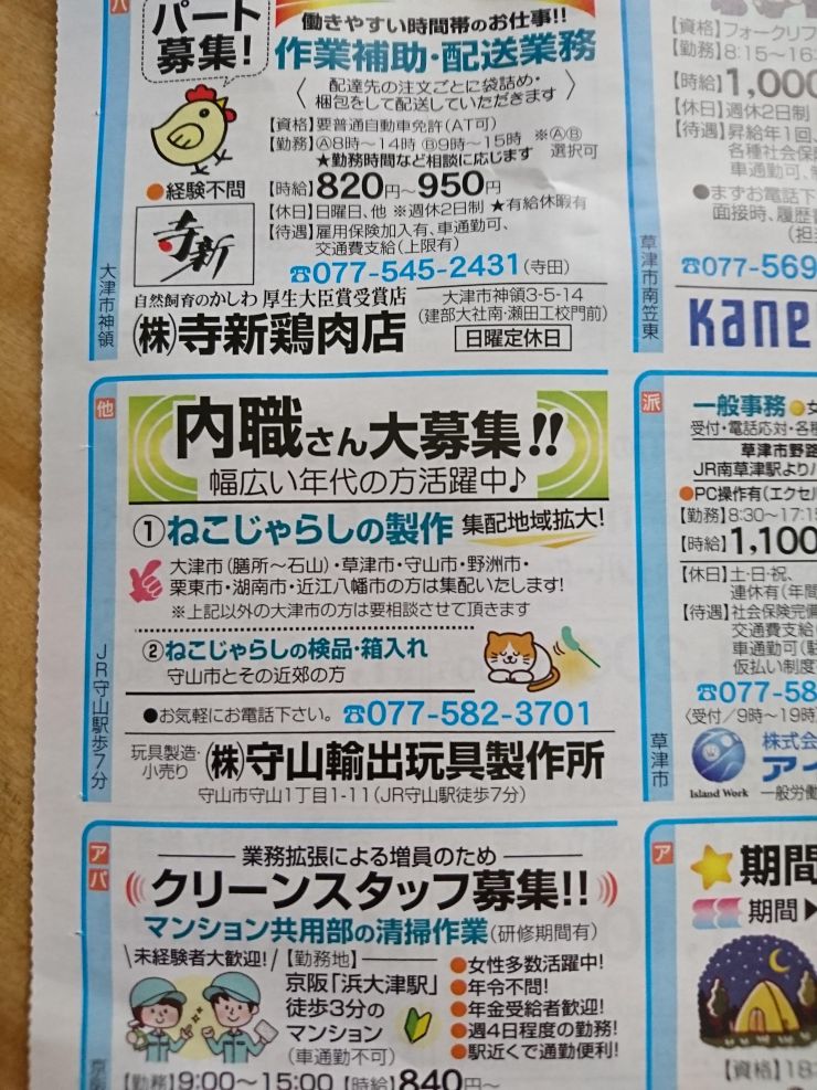 ユーザから投稿してもらった守山市の内職チラシ情報を公開しています。