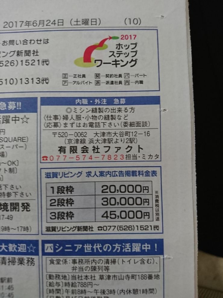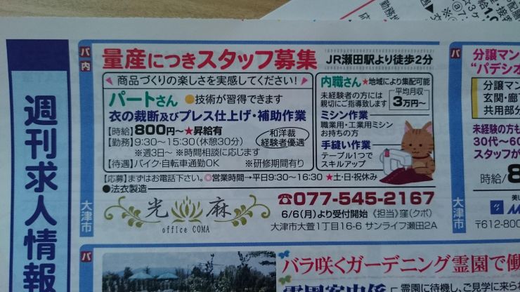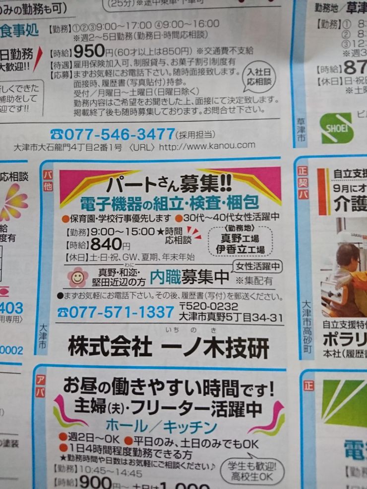 ユーザから投稿してもらった大津市の内職チラシ情報を公開しています。