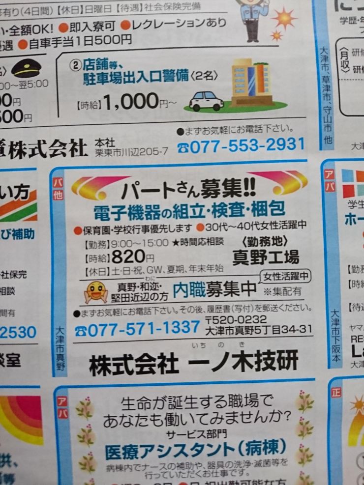 大津市の内職チラシ