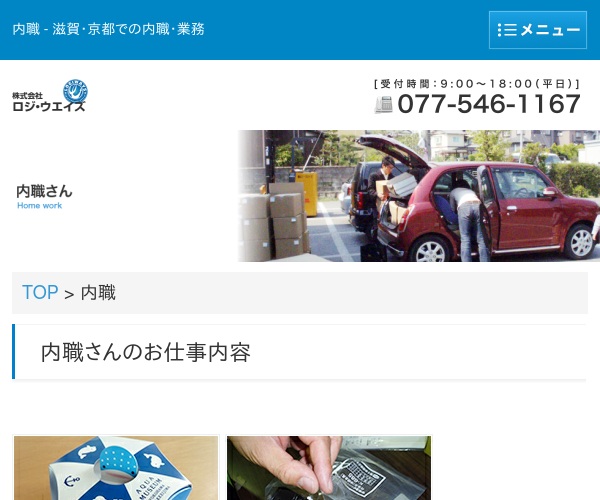 大津市に本社のある各種製造業務や内職作業などを請け負っている会社の栗東事務所の募集になります。仕事内容はお菓子やお香の袋詰め、工業用部品の箱詰めなどが中心となっているようです。こちらの会社は仕事を始める前に現地で説明会を行っています。実際に工場を見たり話を聞く機会があるので納得した上で仕事を始めることが出来ると思います。