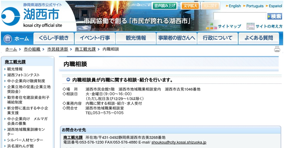 湖西市の公式ホームページになります。湖西市では湖西市民会館にて内職に関する情報提供や相談受付などを行っているようです。ホームページでの求人情報の公開などは行っていないので来所や電話での問い合わせで情報を得ることが出来ます。相談員の方に直接相談できるので初めて内職を考えている方も安心して利用できると思います。