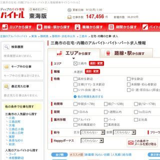 あちこちのサイトを検索するヒマがない!という方は「career jet」で検索してください。複数のサイトを同時に検索できるので時短求人検索できますよ。オンライン家庭教師、WEBモニター、アンケートモニター、美容モニター、ミステリショッパー、特定保健指導員、セラピスト、ヤクルト販売などのお仕事が見つかります。キーワードは在宅ワーク、内職、業務委託などいろいろ変えてみてくださいね。各詳細ページは元のサイトへリンクしているので応募などはそちらから確認します。検索結果が多すぎる場合は左側の雇用形態で絞り込むのもいいですね。