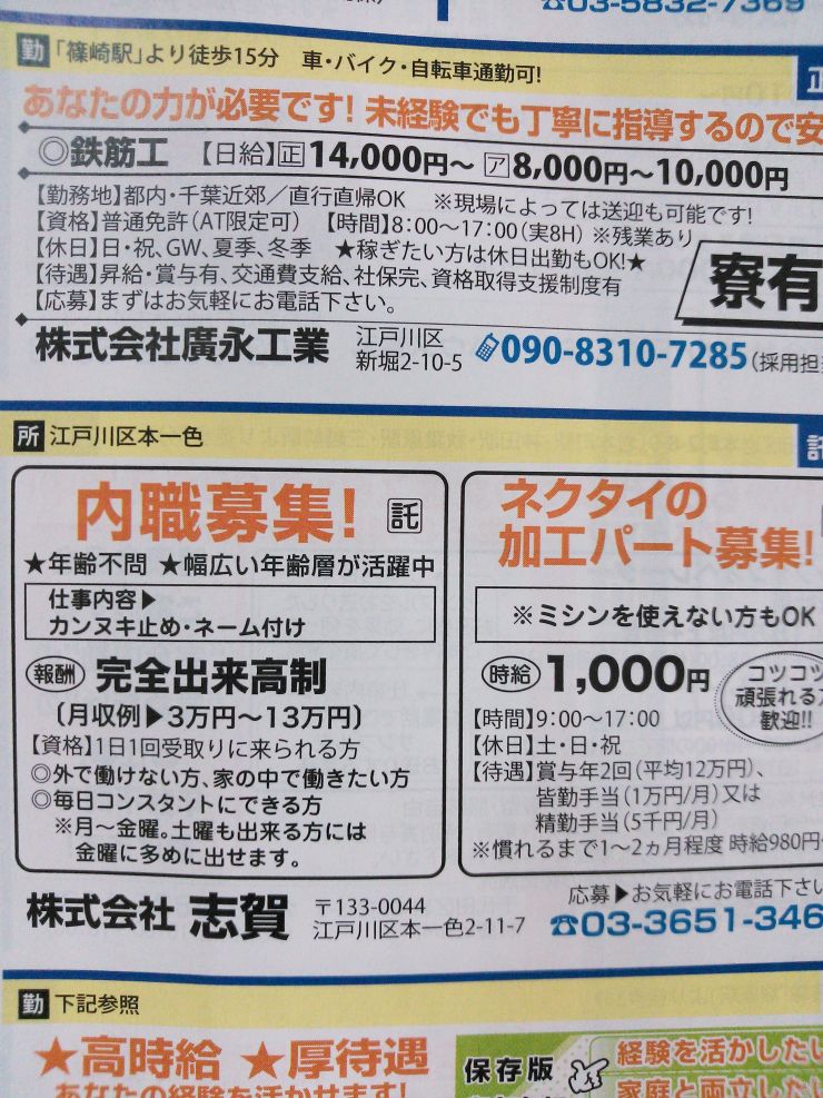 ユーザから投稿してもらった江戸川区の内職チラシ情報を公開しています。