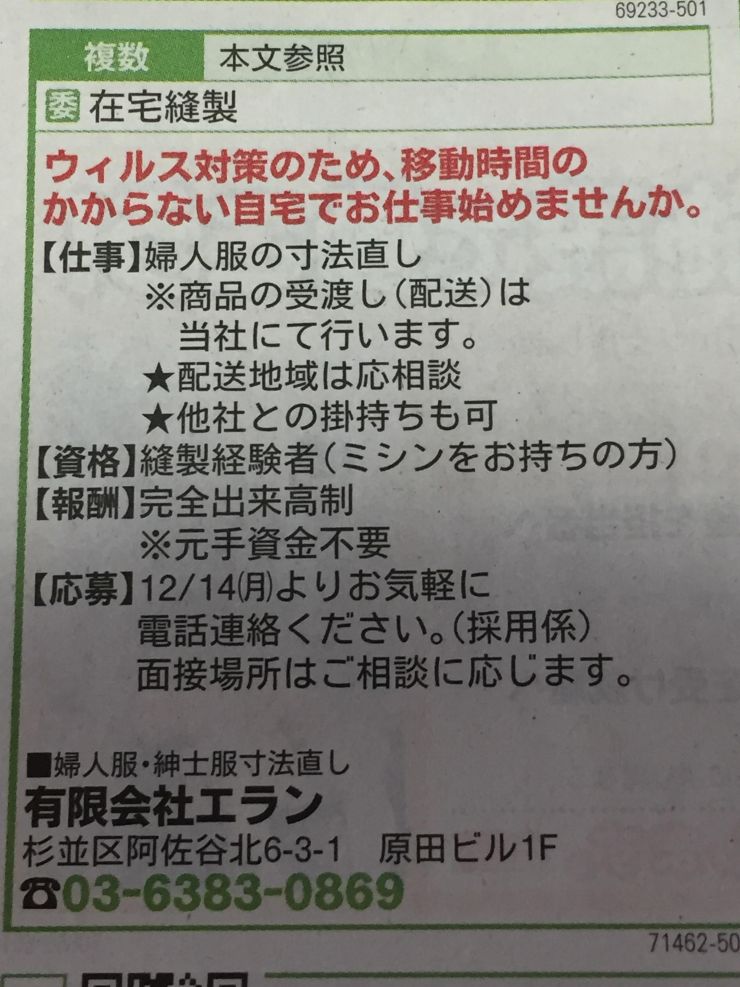 ユーザから投稿してもらった杉並区の内職チラシ情報を公開しています。