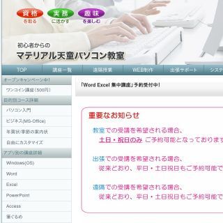 「マテリアル天童パソコン教室」では、趣味のパソコン操作から実務でのスキルアップ、パソコン関連の資格取得までを幅広くカバーするコース設定がされています。パソコンの基本操作を学ぶのであれば、Windowsとインターネット、メールの基礎を押さえる「パソコン入門講座」がオススメです。料金は、「パソコン入門講座(6時間)」で19